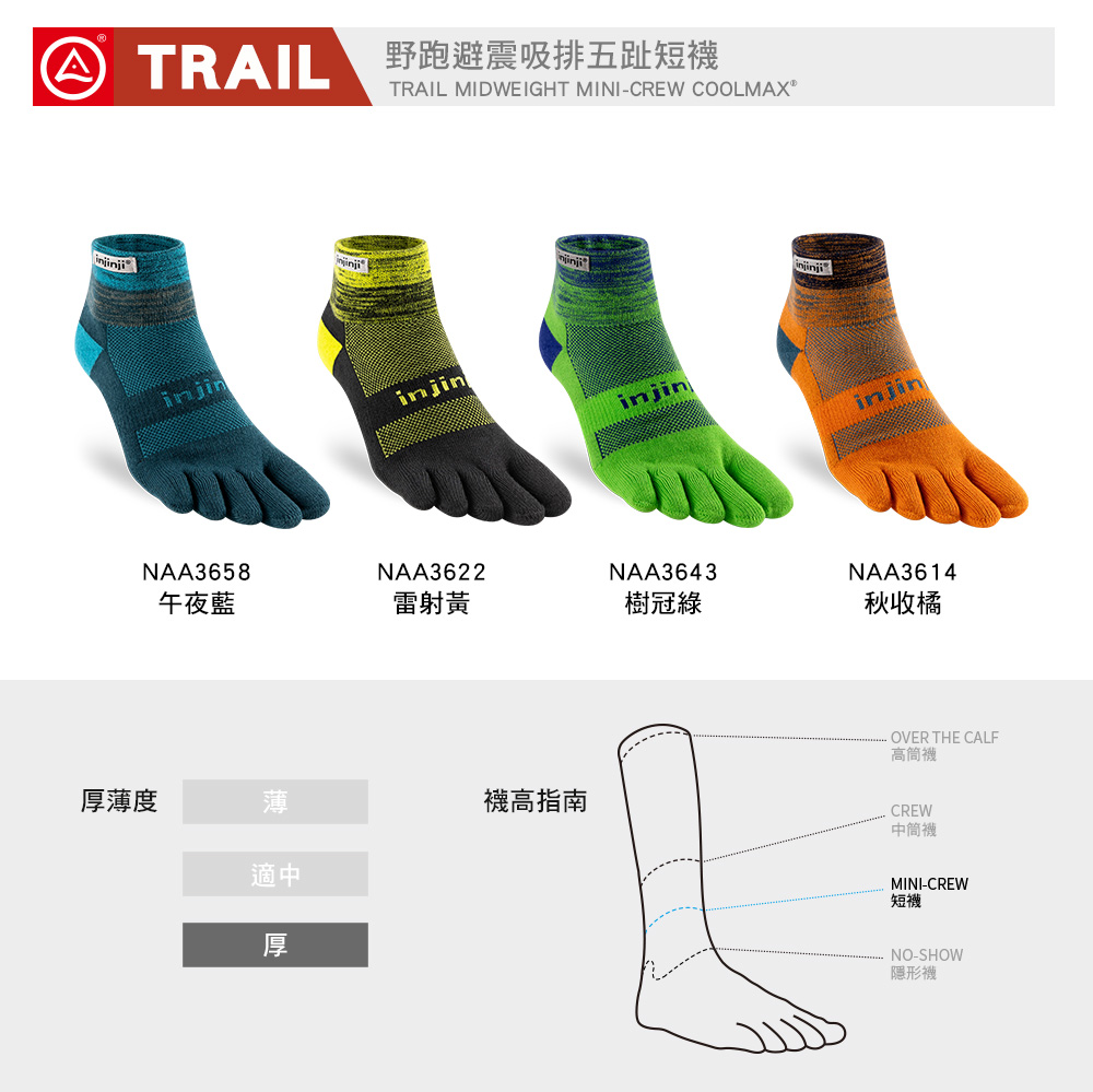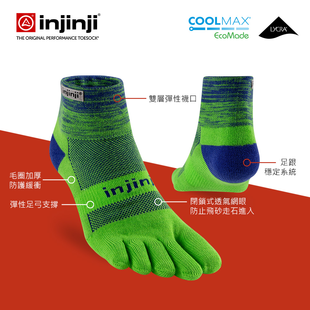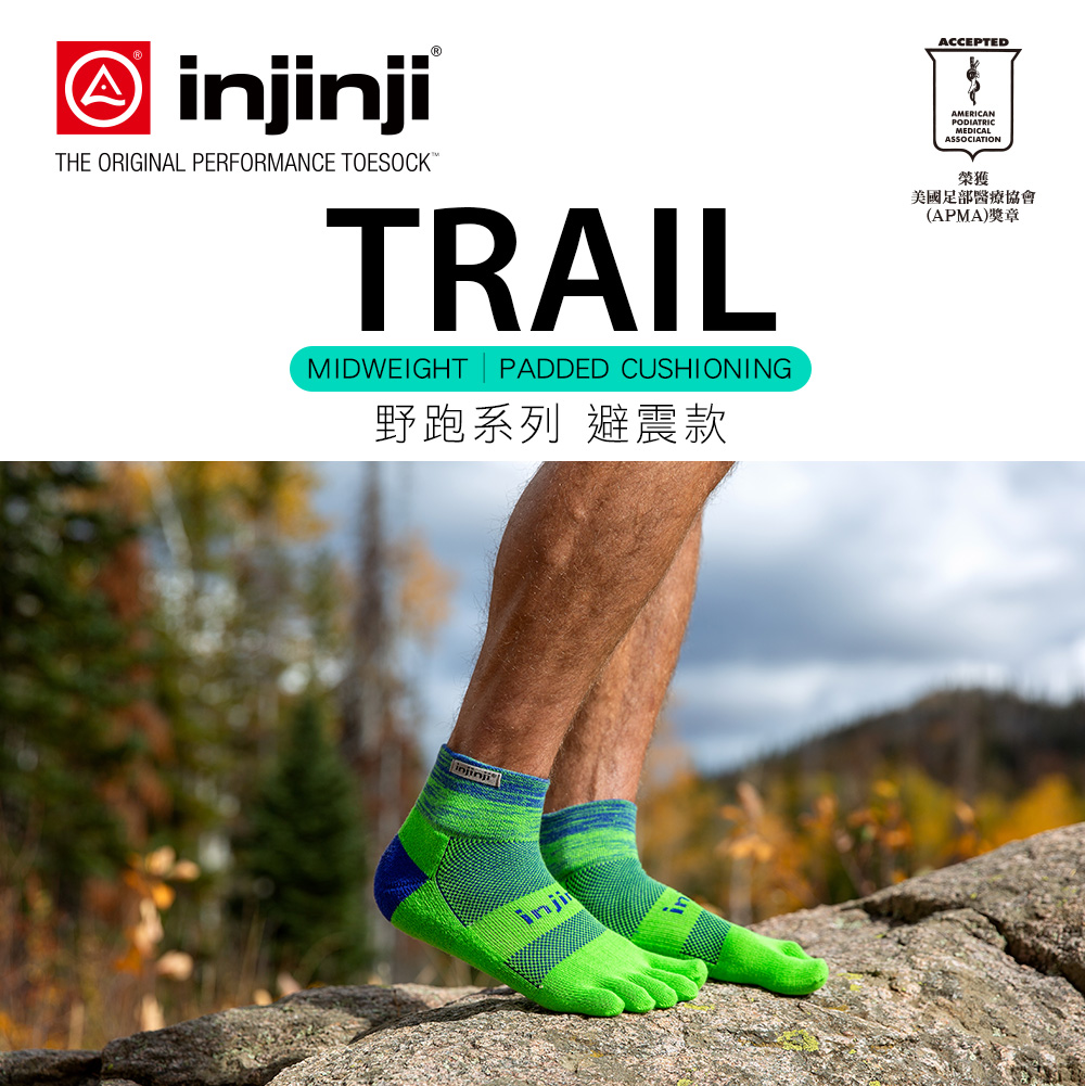 【injinji】Trail野跑避震吸排五趾短襪 (樹冠綠) - NAA3643 | 厚底防震 運動員推薦 吸濕排汗 五趾襪