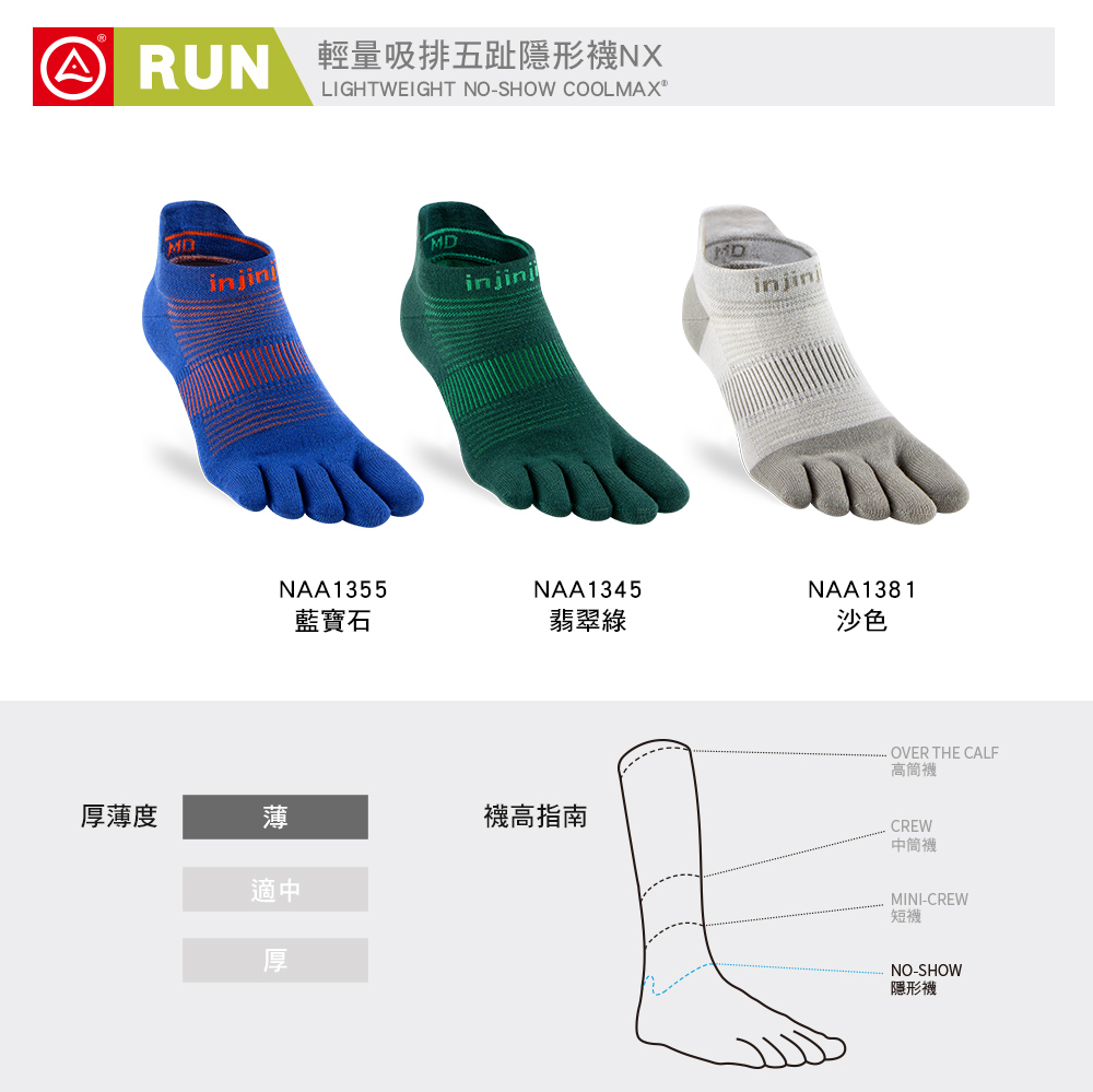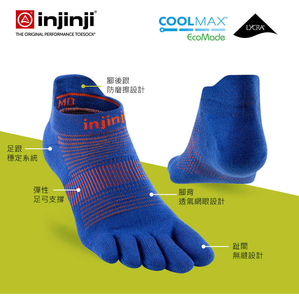 【injinji】Run輕量吸排五趾隱形襪NX (藍寶石) - NAA1355 | COOLMAX 快乾襪 吸濕排汗 輕量透氣 五趾襪 隱形襪
