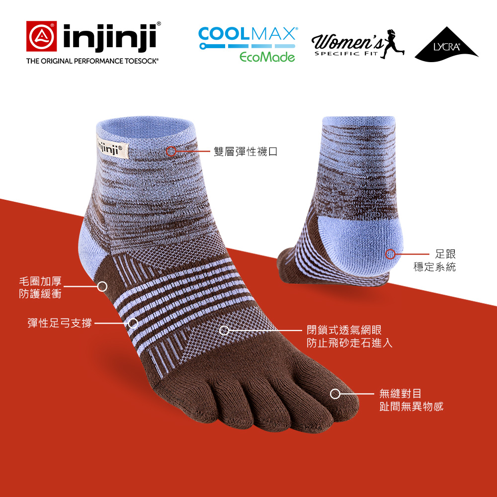 【injinji】女 Trail野跑避震吸排五趾短襪 (長春花色) - WAA3831 | 厚底防震 運動員推薦 吸濕排汗 五趾襪