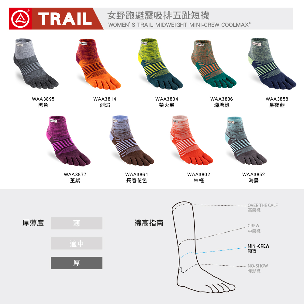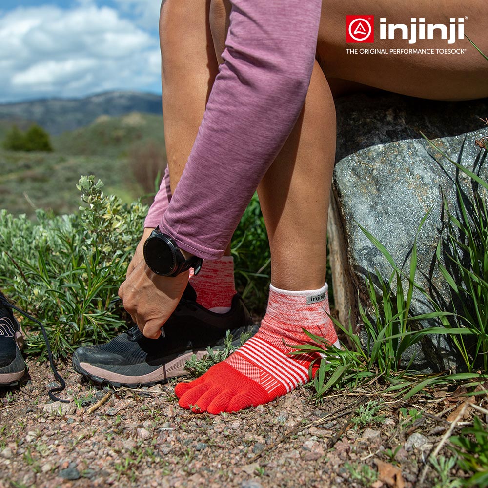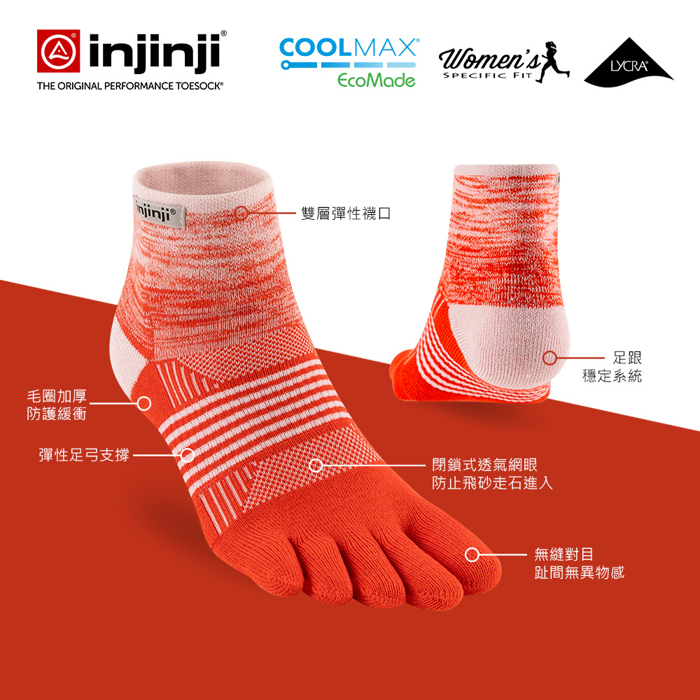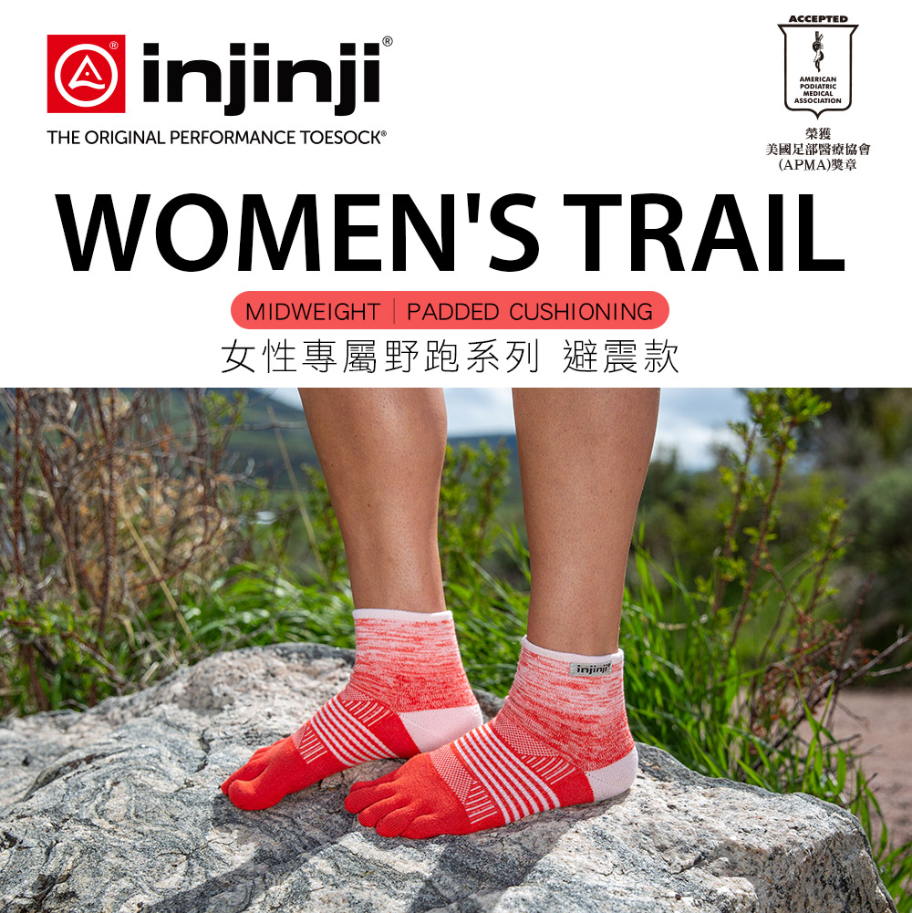 【injinji】女 Trail野跑避震吸排五趾短襪 (朱槿) - WAA3802 | 厚底防震 運動員推薦 吸濕排汗 五趾襪