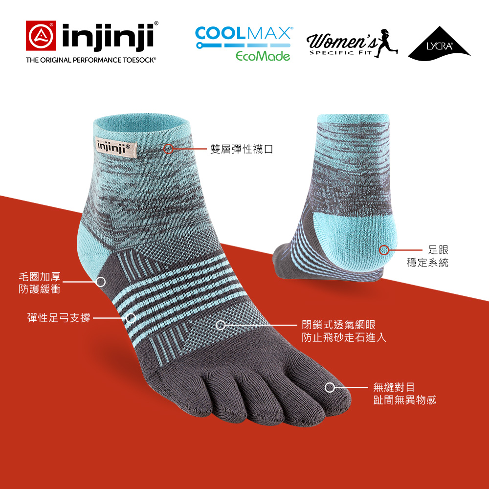 【injinji】女 Trail野跑避震吸排五趾短襪 (海景) - WAA3852 | 厚底防震 運動員推薦 吸濕排汗 五趾襪
