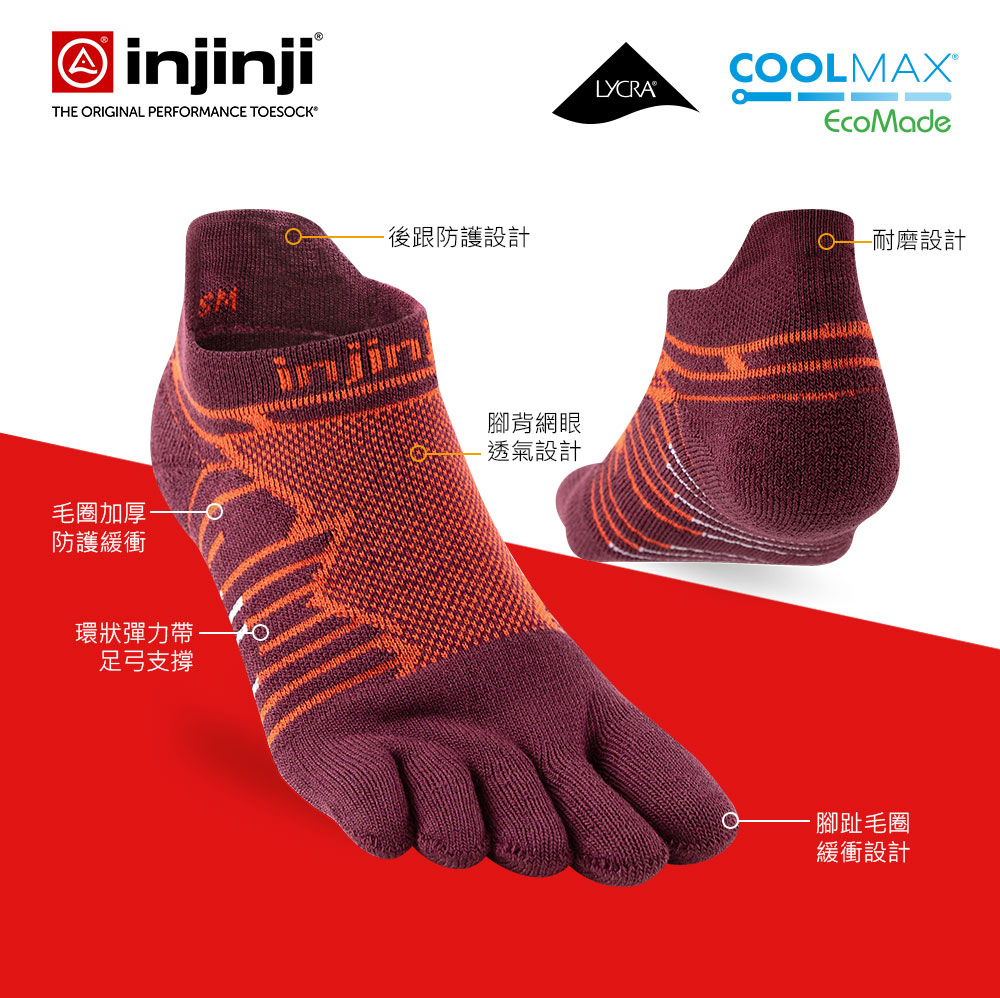 【injinji】Ultra Run終極系列五趾隱形襪 (桃花心木) - NAA6508 | 吸濕排汗 輕量透氣 避震緩衝 全馬 超馬 推薦跑步襪