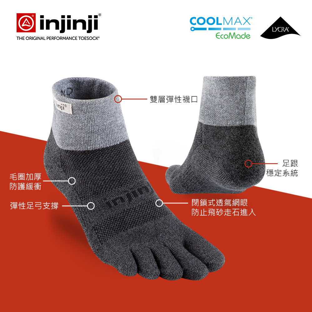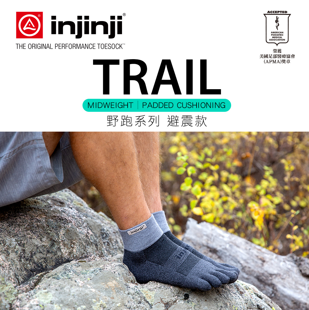 【injinji】Trail野跑避震吸排五趾短襪 (黑色)-NAA3695 | 厚底防震 運動員推薦 吸濕排汗 五趾襪