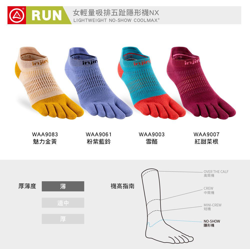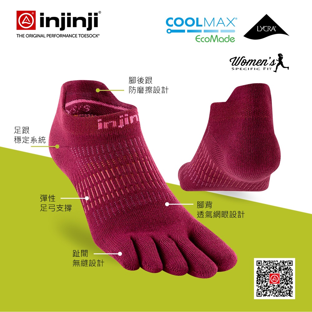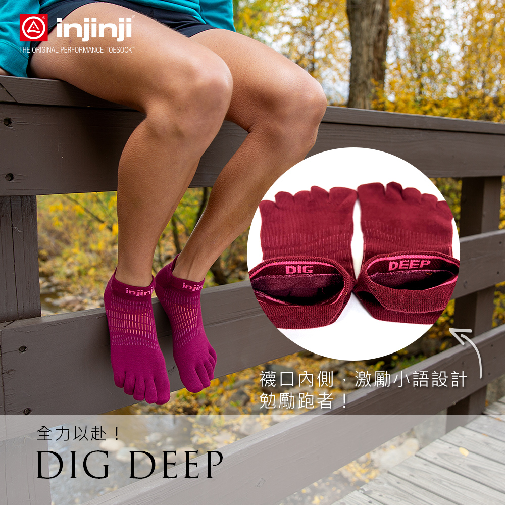 【injinji】女 Run輕量吸排五趾隱形襪NX(紅甜菜根) - WAA90 07 | COOLMAX 女生腳型 吸濕排汗 輕量透氣 五趾襪 隱形襪