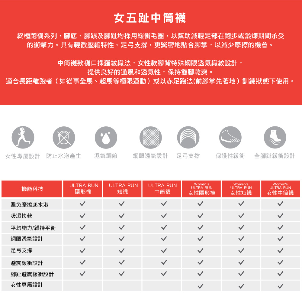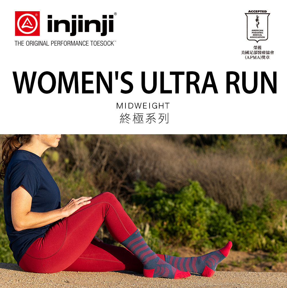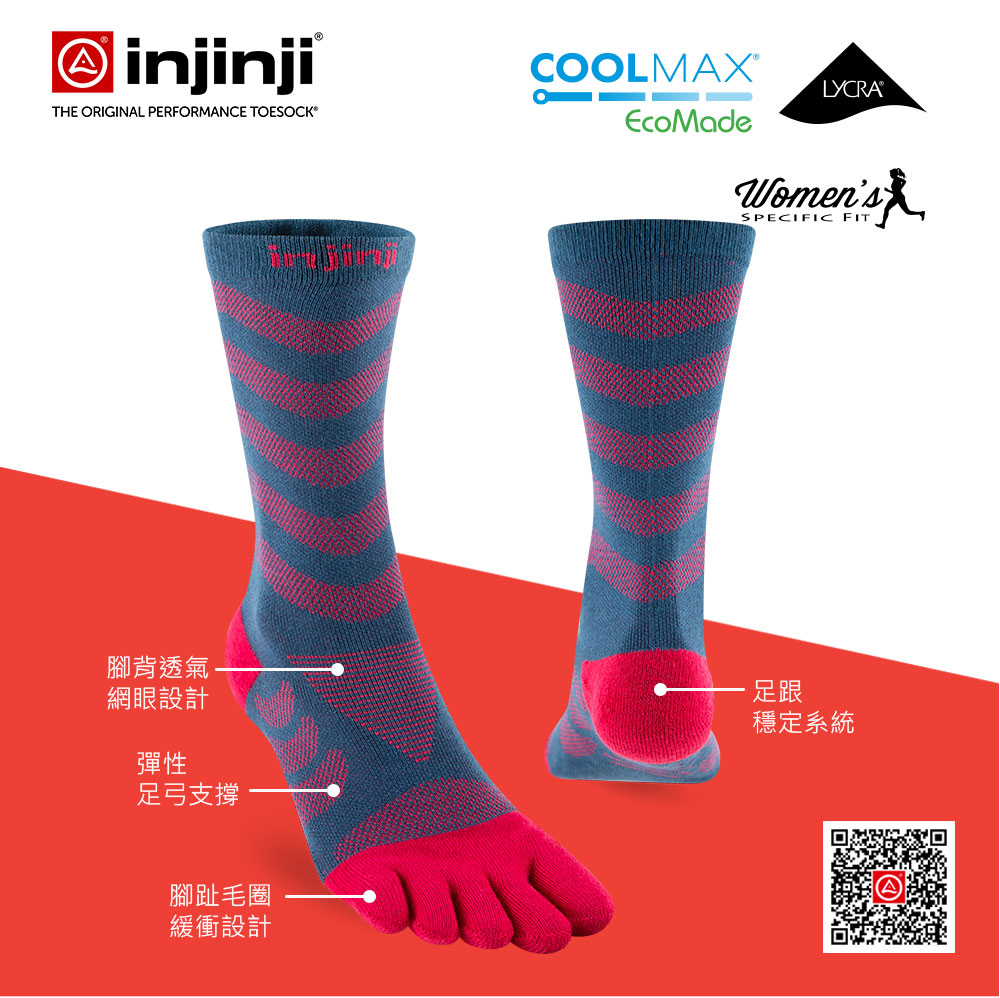 【injinji】女 Ultra Run終極系列五趾中筒襪 (莓果紅) - WAA6804 | 吸濕排汗 推薦女生 避震緩衝 推薦路跑用品 慢跑長跑 馬拉松襪